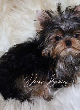 Super tiny doll face girl. She has a super short, flat face, big apple head, snout that sits between the eyes and tilts up, eyes super wide set and big. She is extremely doll face and will be amazing as an adult!