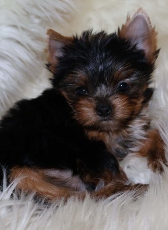 This sweetie is charting 4.5-5lbs full grown. He has a perfect little tiny doll face! He has a short, snout, with very wide set, large glassy eyes. He looks like a little teddy bear!