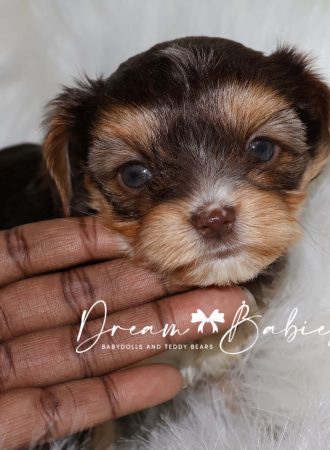 This little nugget has the flattest face out of all of her siblings. She is so beautiful! Her snout is short, tilted, and sits high up on her face. Her eyes are wide and far apart. She has a perfect round, apple head. She has such a great babydoll face! Great for someone who wants the petite tiny features without being too extreme.