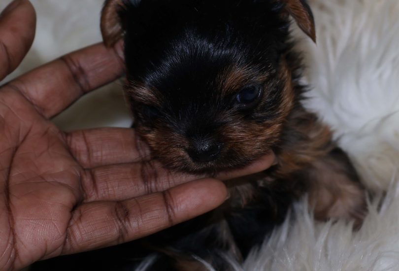 This little boy had a beautiful small teddy bear face. Short snout, wideset eyes. He has a dark coat and is short and compact. Will do great with a family with children. He is super playful and fun, but not too delicate. Although he is an active boy, he is also very affectionate towards me, and constantly tries to get to me when he wakes up. He loves being held and loved on.