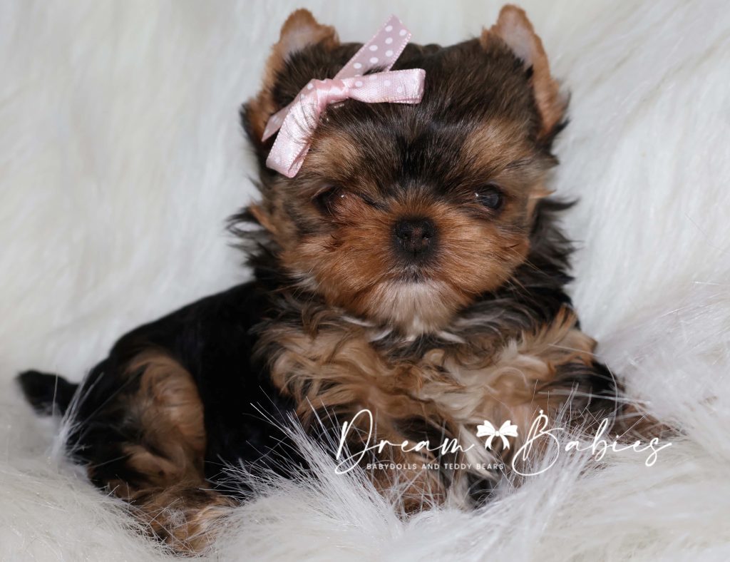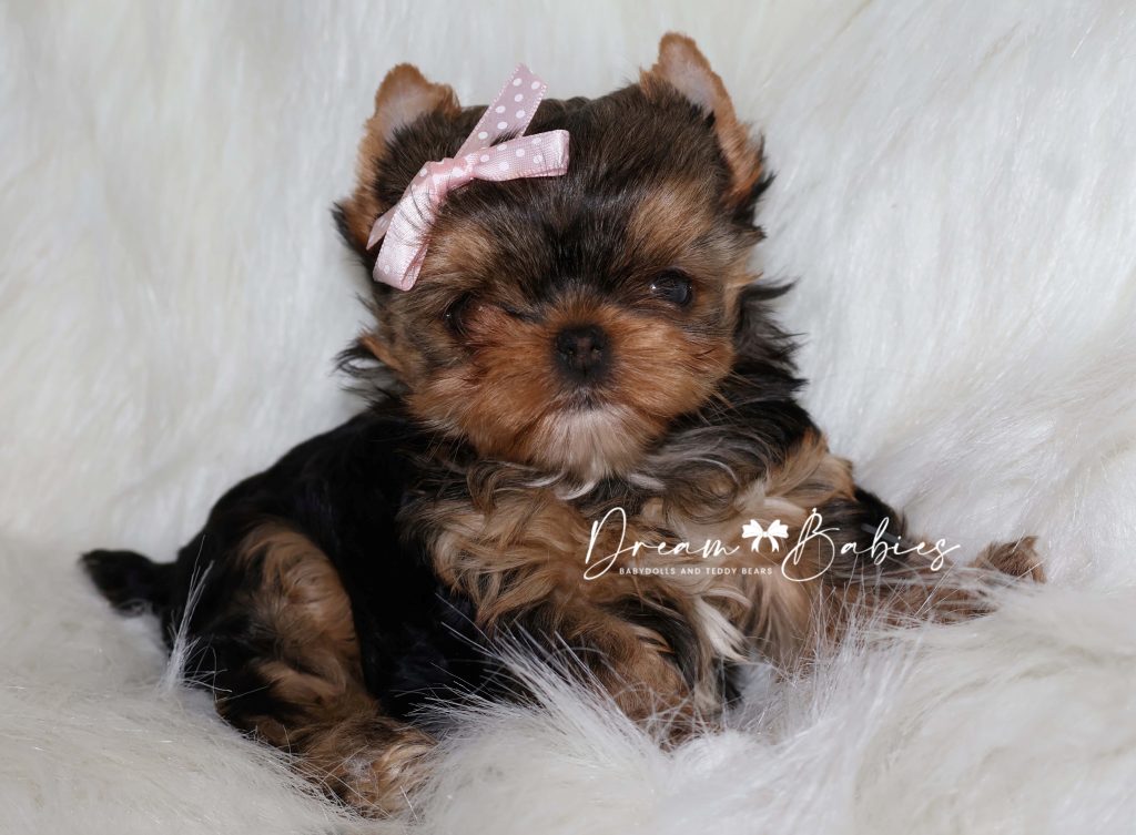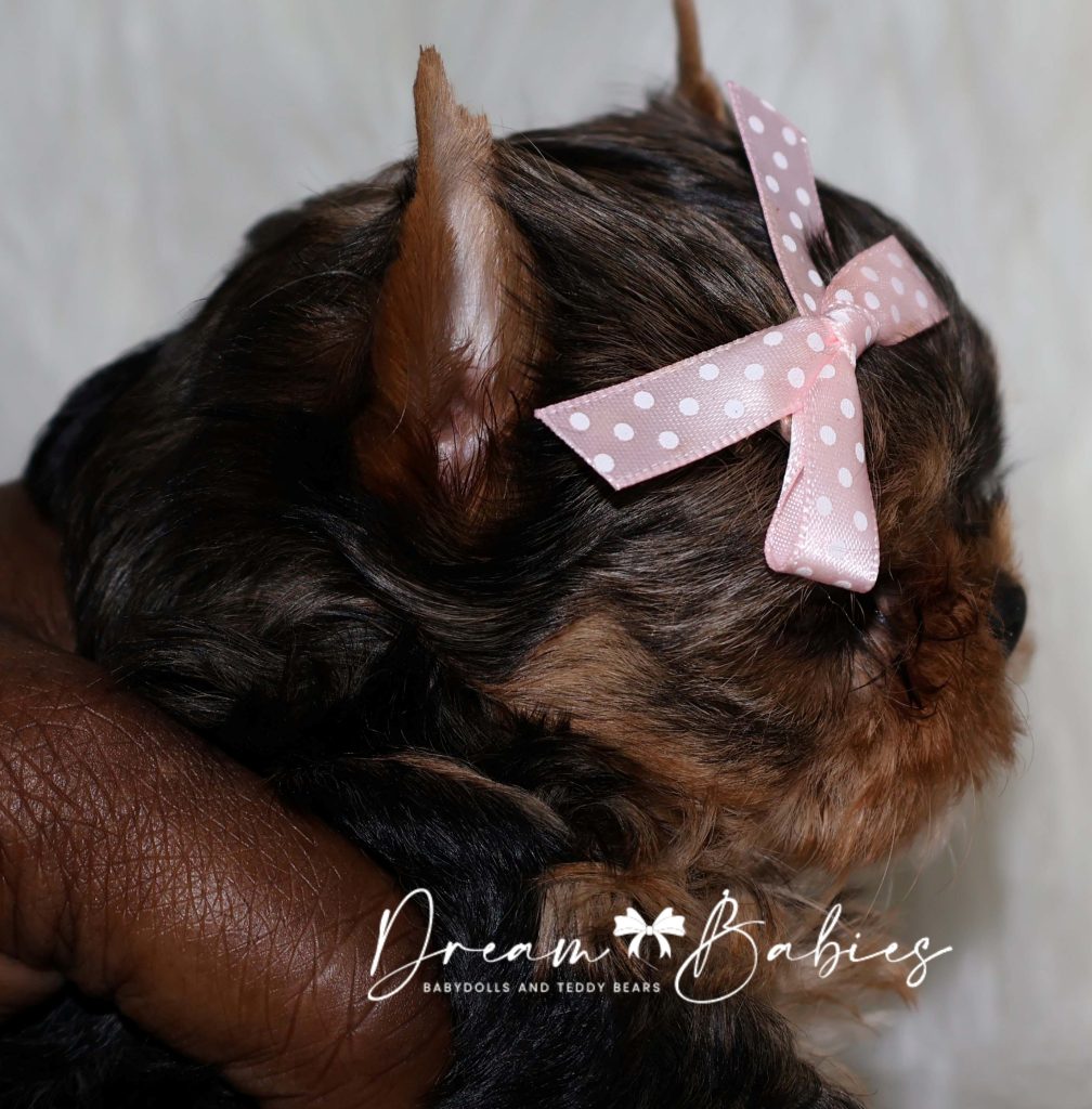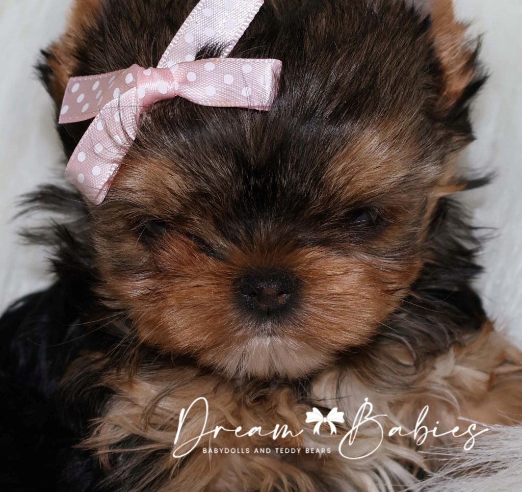 She has a super tiny little babydoll face. Very tiny snout. Large apple head. Wideset eyes. As she continues to grow, her eyes will become big and bubbly. Tiny ears. Thick silky coat.