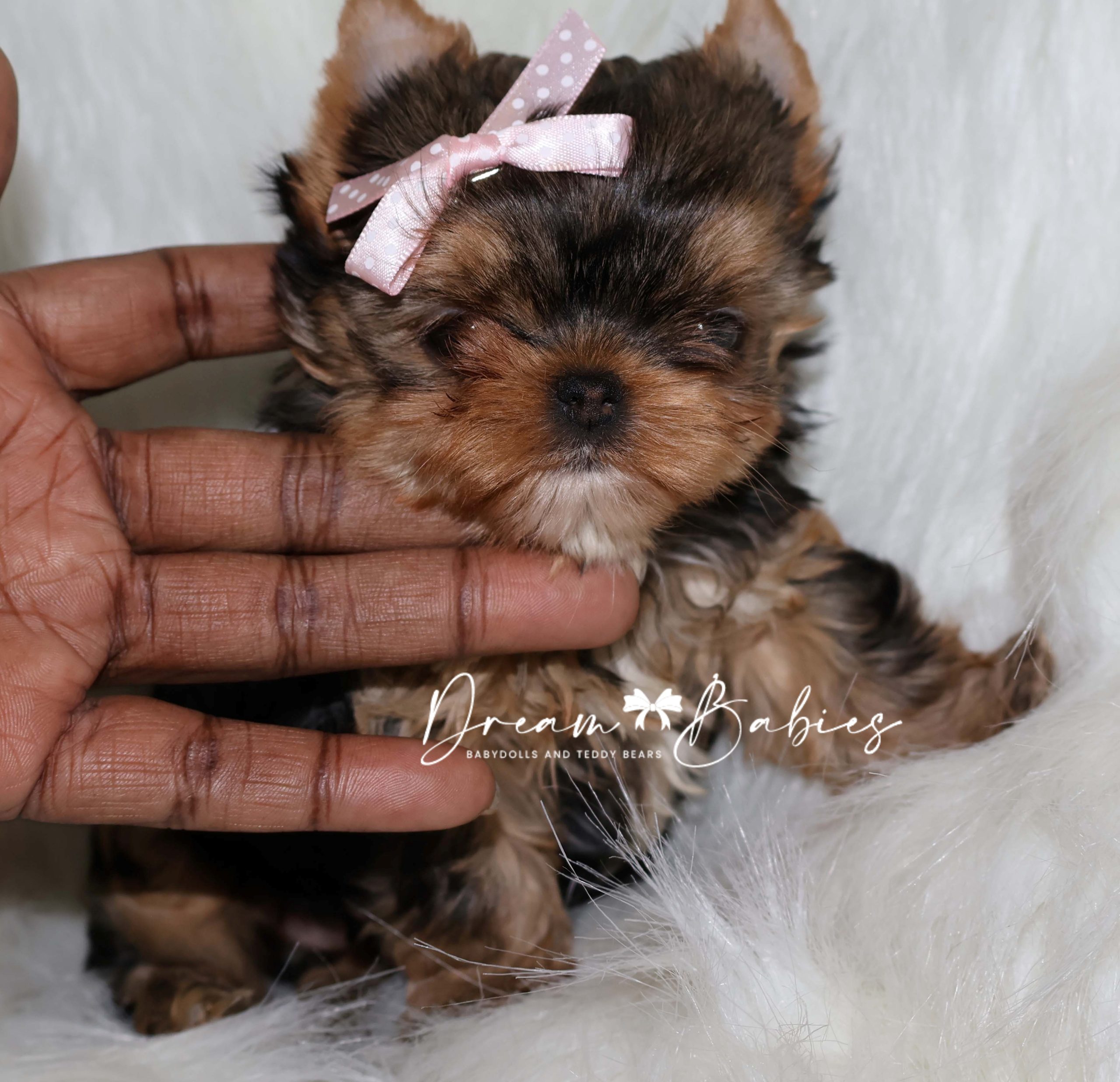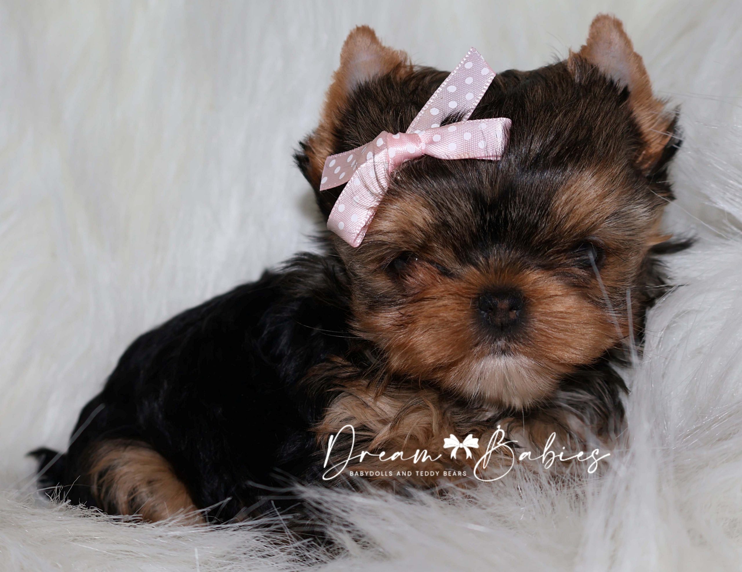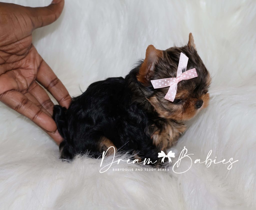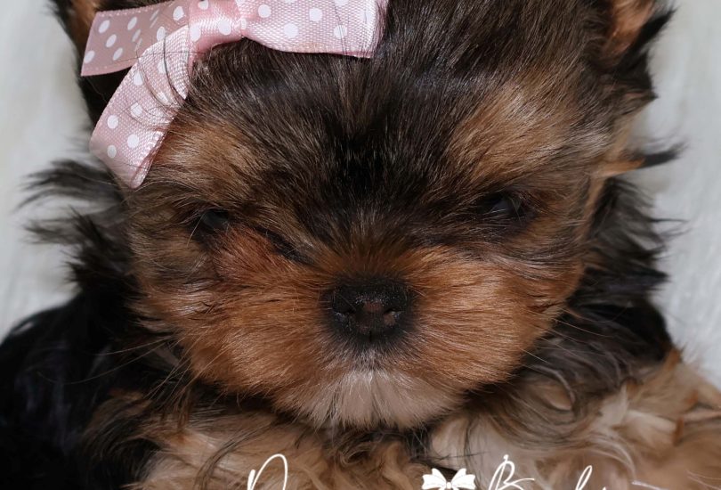 She has a super tiny little babydoll face. Very tiny snout. Large apple head. Wideset eyes. As she continues to grow, her eyes will become big and bubbly. Tiny ears. Thick silky coat.